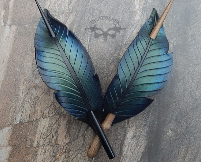 hair accessory Iridescent crow feather leather hair slidehair accessory Iridescent crow feather leather hair slide